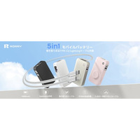 【40%OFF】RORRY巻き取り式lightning用とUSB-Cケーブル・PD30W・10000mAh大容量5in1モバイルバッテリー「H1」、ピンク&スターライト限定セール