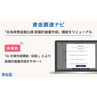 資金調達ナビ、「創業計画書作成機能」にAI機能を搭載しリニューアル