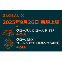 Global X Japan株式会社「グローバルX ゴールド ETF」【425A】、「グローバルX ゴールド ETF(為替ヘッジあり)」【424A】東京証券取引所に新規上場