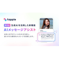【国内初】マッチングアプリ「タップル」、生成AIを活用した新機能「AIメッセージアシスト」をリリース