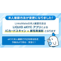 MVNOサービス「LinksMate(リンクスメイト)」にて、本人確認方法を「LIQUID eKYC」アプリによる「ICカードスキャン」+「顔写真撮影」のみに変更!