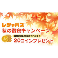レジャー・エンタメの定額制サービス「レジャパス」秋の復会キャンペーン開催!復会で20レジャコイン贈呈