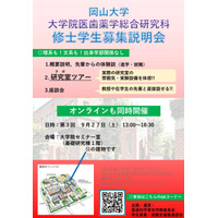 【岡山大学】大学院医歯薬学総合研究科 医歯科学専攻「2025年度修士課程学生募集説明会」〔9/27,土 ハイブリッド開催〕