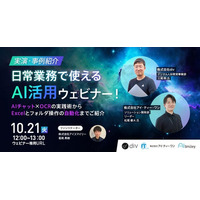 10/21開催【実演・事例紹介】日常業務で使えるAI活用ウェビナー! AIチャット×OCRの実践術からExcelとフォルダ操作の自動化まで一挙ご紹介