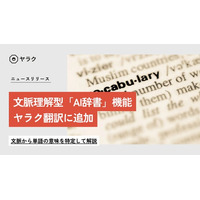 【業界初】文脈理解型「AI辞書」機能がヤラク翻訳に追加|文脈から単語の意味を特定して解説