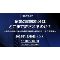 人事・労務担当者の疑問を解消!Webセミナー「【Q&Aセミナー】企業の懲戒処分はどこまで許されるのか?」を12月9日(火)に開催