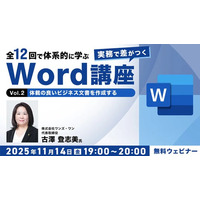 【Word中級者】Wordのレイアウト力を高め、見やすく伝わる文書作成をめざそう!11/14(金)・11/28(金)無料セミナー「実務で差がつくWord講座 Vol.2/3」開催