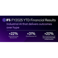 IFS、産業用AIの実績拡大により年間経常収益(ARR)が22%成長