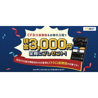 「CFD口座開設&お取引1回でもれなく3,000円プレゼント!キャンペーン」実施!