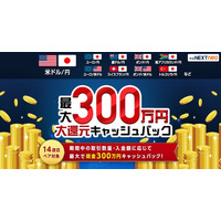 『外貨ネクストネオ』でのお取引で最大300万円をキャッシュバック! 株式会社外為どっとコム(本社:東…