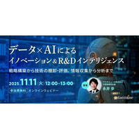 【好評につき再開催】R&D、経営企画、新規事業担当者向けウェビナー「データ×AIによるイノベーション&R&Dインテリジェンス~戦略構築から技術の棚卸・評価、情報収集から分析まで~」を11月11日に開催