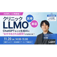 【無料ウェビナー】医療・美容業界向けクリニックLLMO━ChatGPTなどの生成AIに“おすすめされる医院”になるには?(アーカイブ視聴権あり)を11/20(木)に開催