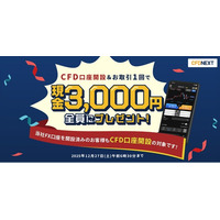「CFD口座開設&お取引1回でもれなく3,000円プレゼント!キャンペーン」実施!