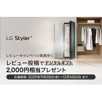 レビュー投稿で、もれなくデジタルギフト2,000円相当をプレゼント! LGエレクトロニクス・ジャパン…