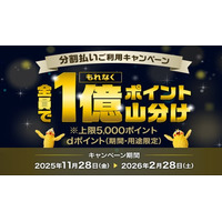 「dカード」で「分割払いご利用で1億ポイント山分けキャンペーン」を開催!