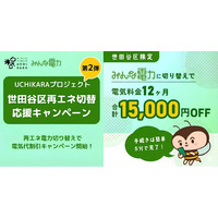 世田谷区限定!申請不要で最大15,000円割引みんな電力、再エネ切替キャンペーン第2弾を12月1日開始