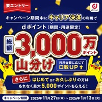キャリア決済のご利用で「dポイント3,000万ポイント山分けキャンペーン」を開催