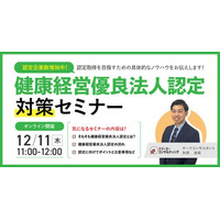 【12/11(木)11:00-12:00開催】社員が辞めない組織づくりへ。中小企業でも確実に進められる!健康経営優良法人認定対策セミナー ~準備の進め方と東京都の「銀の認定」の基本ポイントも紹介~