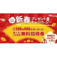 アソビュー!、西武園ゆうえんちや新江ノ島水族館など、人気施設のチケットが総勢200組400名様に当たる!「新春お年玉プレゼントキャンペーン」を2026年1月1日(祝・木)より開催!