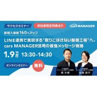【1月9日開催 cars サクセスセミナー】新規入庫数160%アップ!LINE連携で実現する“取りこぼさない整備工場”へ。cars MANAGER活用の最強メッセージ戦略