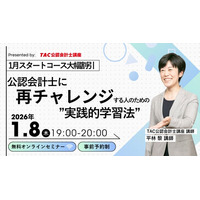 【資格の学校TAC】1/8(木)19:00~「公認会計士に再チャレンジする人のための"実践的学習法"」《無料オンラインセミナー》