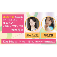 藤江れいなさん(元AKB48/NMB48)と相楽伊織さん(元乃木坂46)がゆったり雑談しながら競輪について語らう「ゆるっと!KEIRINグランプリ2025予想」を12月30日(火)にXスペースで配信