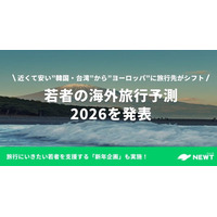 旅行アプリ『NEWT(ニュート)』、「若者の海外旅行予測2026」を発表!近くて安い”韓国・台湾”から”ヨーロッパ”への旅行が増加傾向