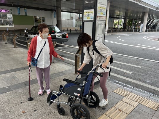 クラウドケアのヘルパーが移動介助をする様子