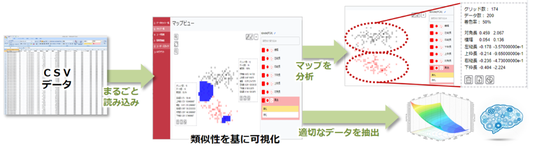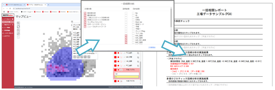 BIGDAT@Analysisは、実験データや工場機器のログなど、多様なビッグデータの可視化と分析を支援するソフトウェアです。高度な専門知識がなくても簡単に統計分析を行えます。製造現場の担当者自身が分析を行うことにより、データサイエンティストでは気づきにくい、担当者ならではの新たな発見が得られます。また、データ全体の構造を俯瞰的かつ直感的に把握することで、工場設備の予兆保全をはじめとした効率化を実現できます。