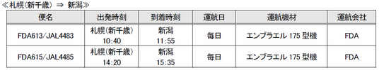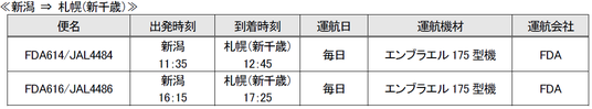 株式会社フジドリームエアラインズ(本社:静岡県静岡市、代表取締役社長:楠瀬 俊一、以下「FDA」)と日本航空株式会社(本社:東京都品川区、代表取締役社長:鳥取 三津子、以下「JAL」)は、2025年3月30日(日)よりFDAが新たに就航する福岡=札幌(新千歳)、札幌(新千歳)=新潟の両路線において、JALコードシェア便を設定します。