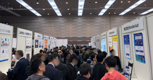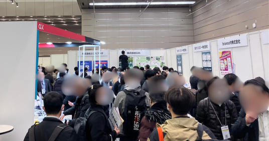 10時より開場。50社ほどの企業が出展し、非常に多くの来場者で盛り上がっています。