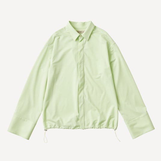 デンマークで大切にされている居心地のいい空間を意味する“Hygge(ヒュッゲ)”の解釈を拡げ、年齢や性別、シーンなど、様々なボーダーを超えて、心地よく着用可能なシャツ。特殊なジャージ素材を採用し、軽くリラックスした着心地とシワになりにくさを実現。裾のドローコードを調整することでシルエットの変更が可能。