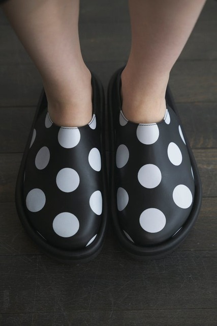 水玉模様のサンダル。