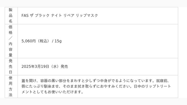 「FAS ザ ブラック ナイト リペア リップマスク」