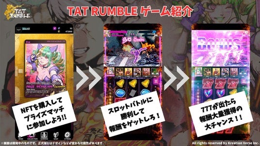 KREATION VERSE Inc(本社:米国デラウェア州、CEO:小川智也、以下「KREATION」)はこのたび、自社オリジナルブロックチェーンゲーム「TAT Rumble」の大型アップデートおよびグローバルローンチが決定したことを発表いたします。