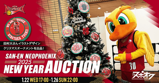 本オークションでは、三遠ネオフェニックスが2024年のクリスマスで展示していた、田村大さんイラストデザインのクリスマスオーナメントに選手やヘッドコーチ、マスコット「ダンカー」の直筆サインを入れて出品。なお、本オークションの売上はチームの運営資金・強化費などに充てられます。