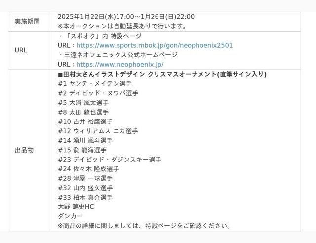 【三遠ネオフェニックス 2025 NEW YEARオークション 概要】