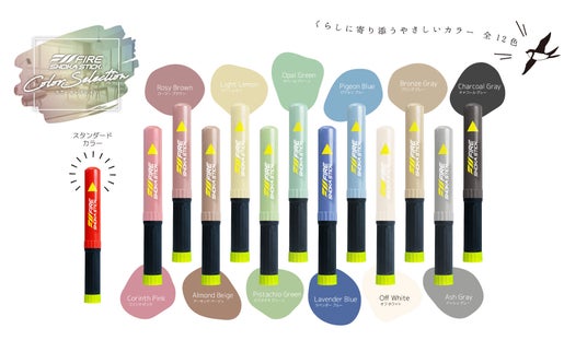 真っ赤な消火器具のイメージを払拭し、自宅のリビングやキッチン、寝室など、手が届く場所に備えたくなる12色のカラー展開。優しい色合いの消火ツールは、ご家族や大切な人への贈り物にも選ばれています。総輸入販売元の株式会社TCL ショールームが位置する愛知県東郷町においては、ふるさと納税 返礼品にも採用されています。