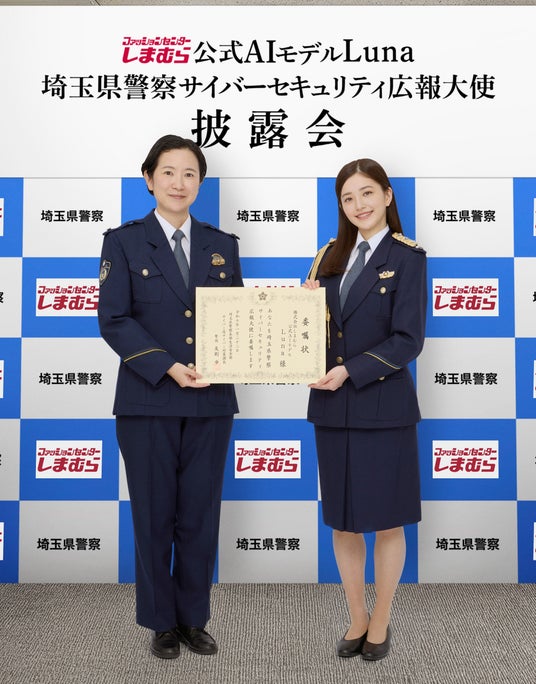 また、就任を記念した披露会を株式会社しまむら本社にて開催し、瑠菜が埼玉県警察 友則歩サイバー対策課長より委嘱状を受け取りました。