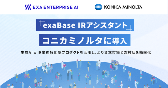 株式会社エクサウィザーズのグループ会社である株式会社Exa Enterprise AI(東京都港区、代表取締役:大植 択真、以下、Exa Enterprise AI)は、コニカミノルタ株式会社(以下、コニカミノルタ)に当社の「exaBase IRアシスタント」が導入されたことをお知らせします。コニカミノルタのIR室など、株主・投資家向けの情報開示に関係する部門において業務特化型の生成AIが活用されることで、担当者の業務DXを推進および付加価値の高い情報開示へと注力できる体制の実現が期待されます。