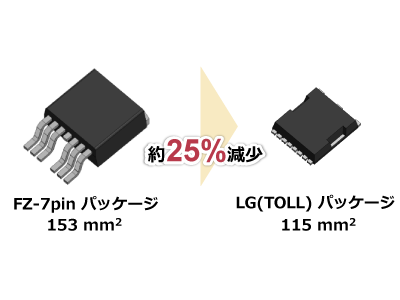 新パッケージを採用することで、従来品※1と比較し実装面積を25%削減。