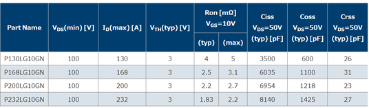 現在、200V耐圧品も開発中であり、今後も車載対応可能な大電流パワーMOSFETのラインナップを拡充し、市場ニーズに応えてまいります。