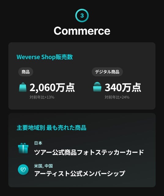 - Weverse Shopのフィジカル商品、デジタル商品販売個数がそれぞれ前年比10%、24%増加で堅調な成長