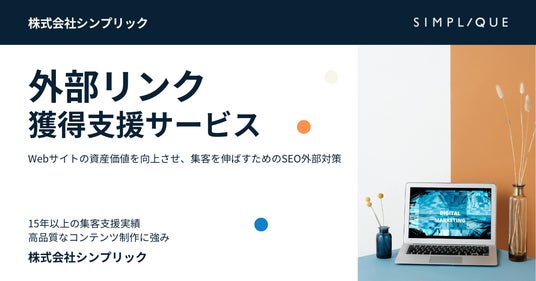 株式会社シンプリック(東京都渋谷区、代表取締役:谷口雅敏)は、15年以上、SEOコンサルティング、SEO記事制作代行サービスを提供してきた実績があり、外部対策においても、戦略設計を行ったうえで、着実にドメインパワーを高める支援を行います。