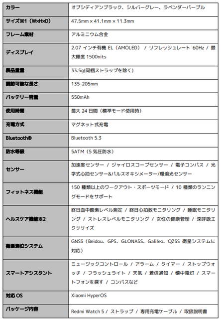 ■Redmi Watch 5のスペック概要