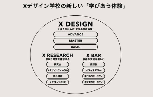 株式会社Xデザイン研究所(所在地:東京都千代田区、共同創業者:浅野智/山崎和彦)が立ち上げたX デザイン学校は2024年春で9年目。すでに1000人以上の社会人が学んでいる、社会人のためのデザイン学校です。UXデザイン、デザイン思考、サービスデザイン、ビジネスデザインやビジョンデザインなどを基礎にしながら、これにこだわらず、誰でもがデザインを活用する社会に向けてのデザインの学びと研究を推進します。