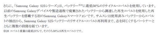 ※18 Samsung Galaxy S25のメタルフレーム(ケース前面)には、重量比20%以上のリサイクルアルミニウムが含まれています。