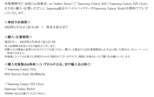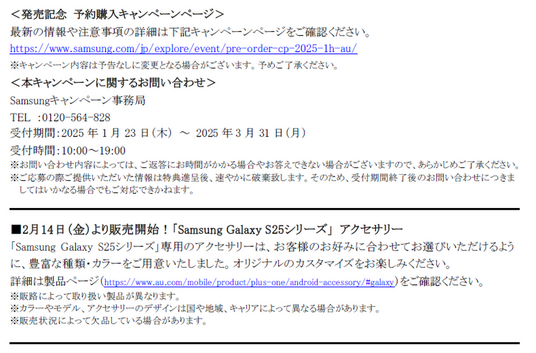 また、1月31日(金)より「Samsung Galaxy S25シリーズ発売記念 予約購入キャンペーン」※を実施いたします。