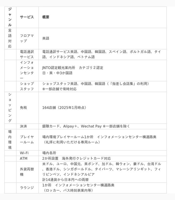◆酒々井プレミアム・アウトレットの訪日観光客向けサービス
