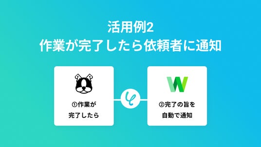 依頼された担当者が作業を完了したら、SlackやChatwork、LINE WORKSなどのお使いのチャットツールに通知します。担当者や関係者がリアルタイムで進捗を把握できるようになることで、プロセスの遅延や抜け漏れも防ぎやすくなります。